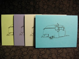 Don’t miss this once in a lifetime chance to “Like Us” on Facebook! Hahaha… but actually I did get a facebook account set up for Four to Go Design, so please do visit it and like it if you don’t mind! I’ve also started my Esty site for the retail end of things. The information is listed under the Purchase tab on this site. Now, I’m off to populate all the different media outlets with all of my one-of-a-kind cards and clever quips so that I can begin global domination of the camper card market…