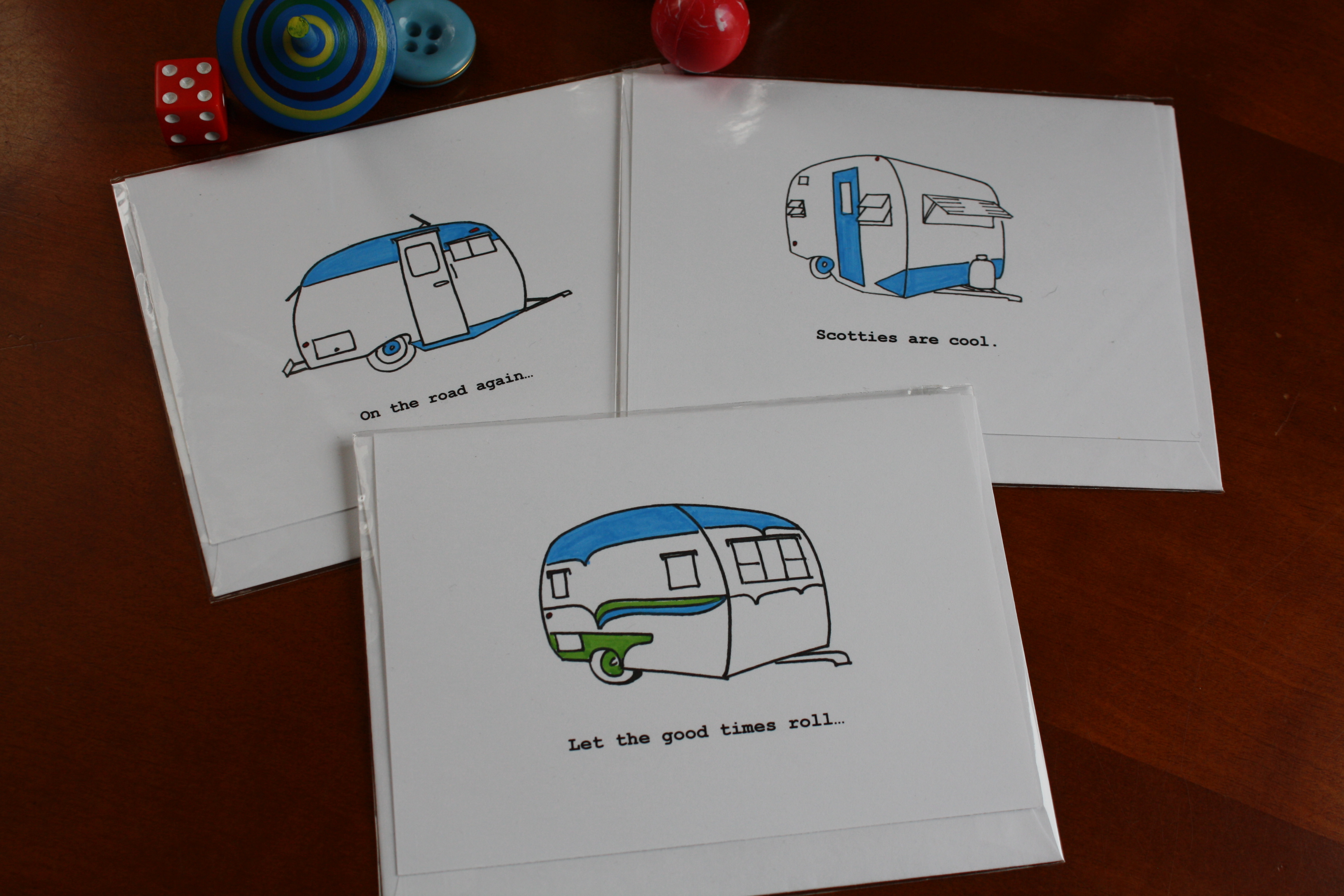 “Campers in Blue” Posted on March 12, 2012 by tbutler Set of 3 with accent color, first run inkjet designs.